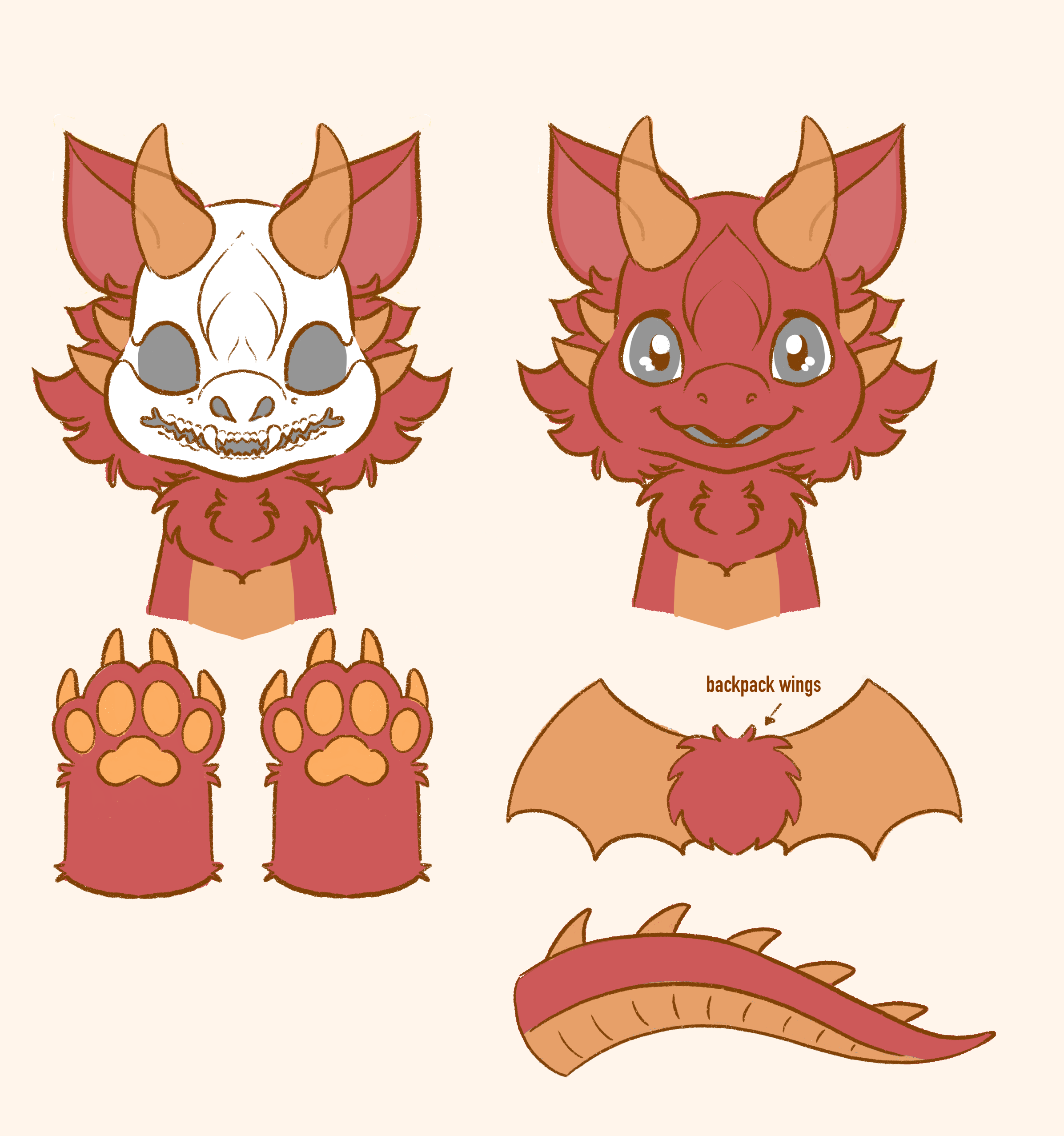 Each will come with paws and a tail. Bat and Dragon will come with backpack wings,